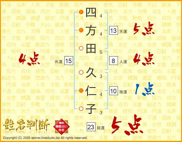 四(4画)方(4画)田(5画) 久(3画)仁(4画)子(3画)