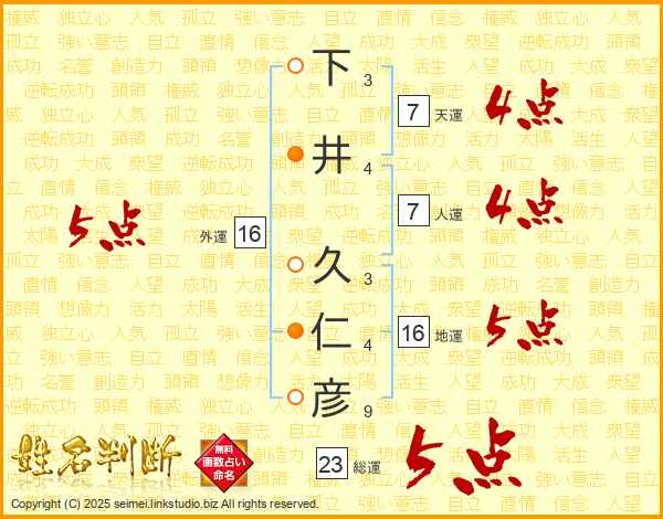 下井久仁彦さんの総運は23画の5点!