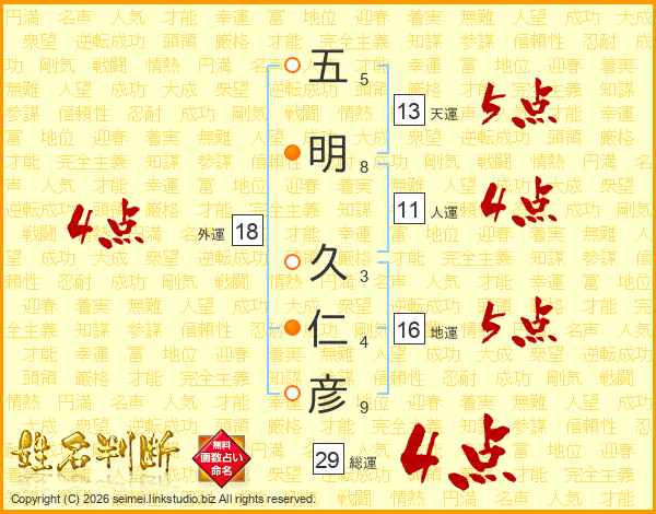 五明久仁彦さんの総運は29画の4点!