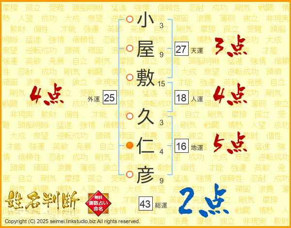 小屋敷久仁彦さんの総運は43画の2点!