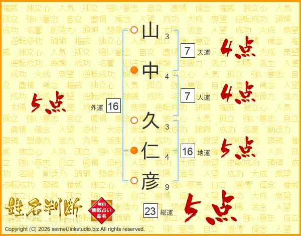 山中久仁彦さんの人運は7画の4点!