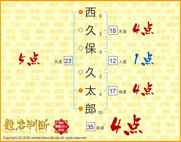 西久保久太郎さんの総運は35画の4点!