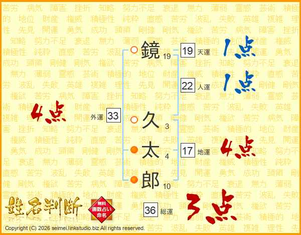 鏡(19画) 久(3画)太(4画)郎(10画)