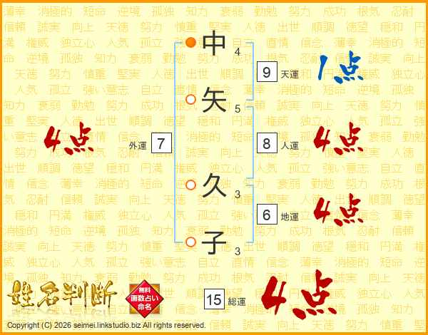中矢久子さんの総運は15画の4点!