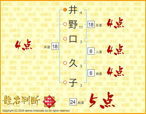 井野口久子さんの外運は18画の4点!