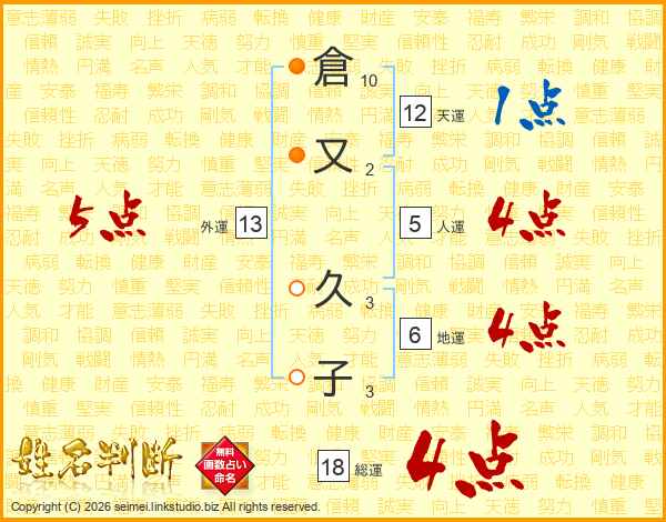 倉又久子さんの総運は18画の4点!