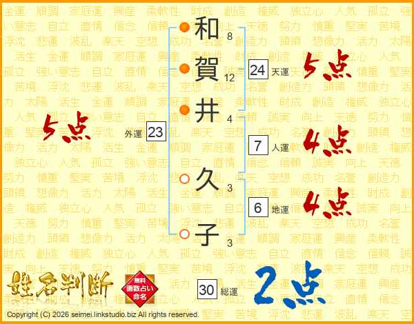 和賀井久子さんの外運は23画の5点!