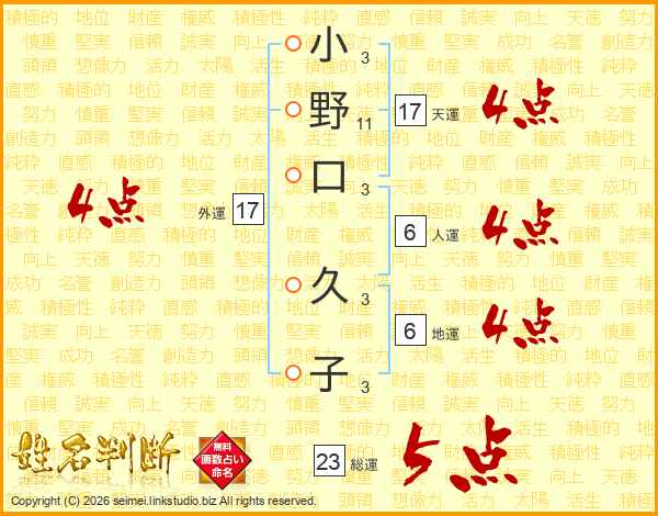 小野口久子さんの外運は17画の4点!