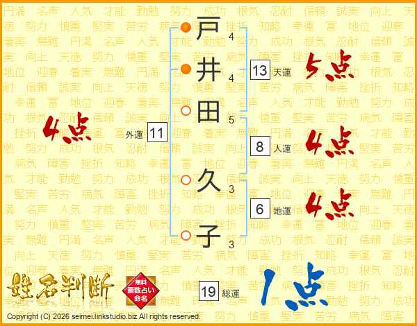 戸(4画)井(4画)田(5画) 久(3画)子(3画)