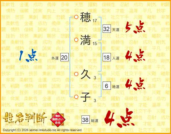 穂(17画)満(15画) 久(3画)子(3画)