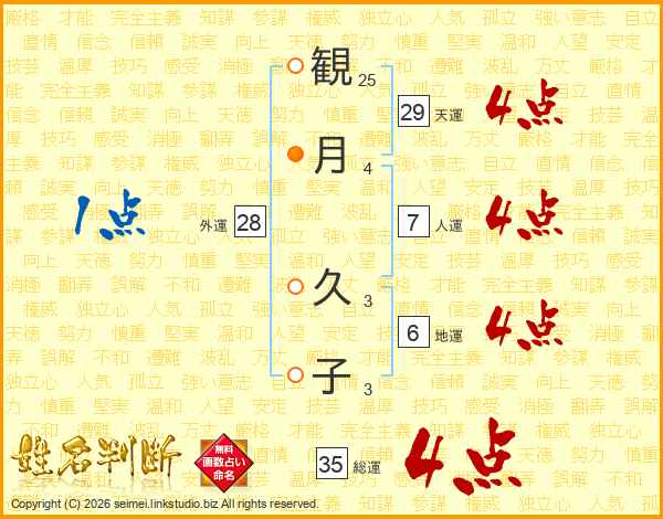 観(25画)月(4画) 久(3画)子(3画)