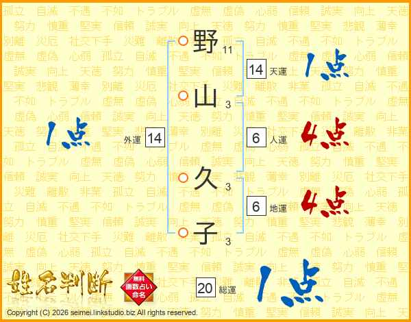 野山久子さんの天運は14画の1点!
