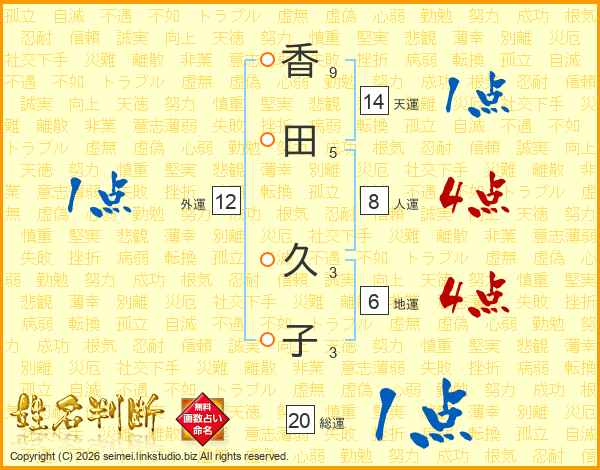 香田久子さんの天運は14画の1点!
