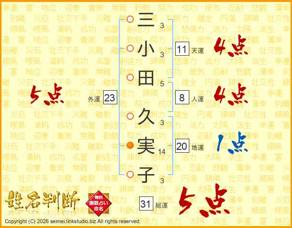 三(3画)小(3画)田(5画) 久(3画)実(14画)子(3画)