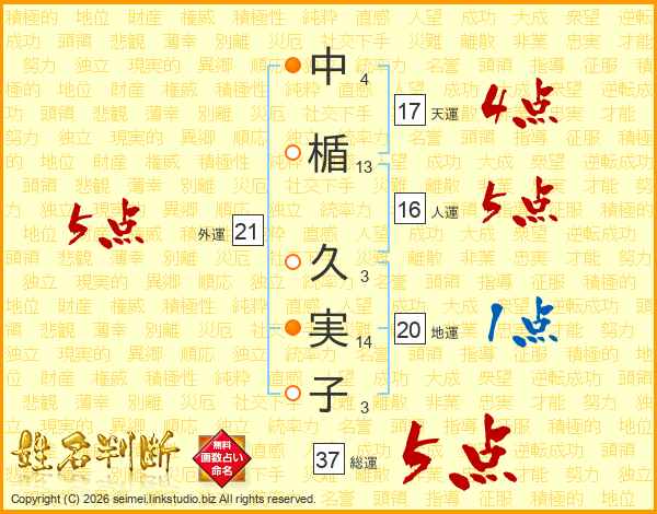 中楯久実子さんの外運は21画の5点!