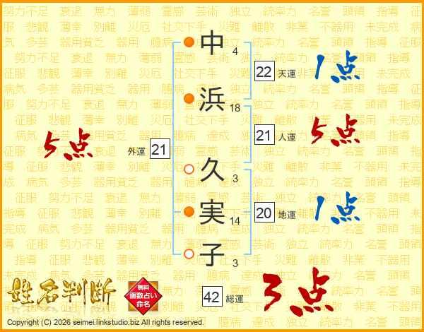 中浜久実子さんの人運は21画の5点!