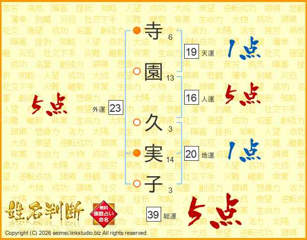 寺園久実子さんの天運は19画の1点!