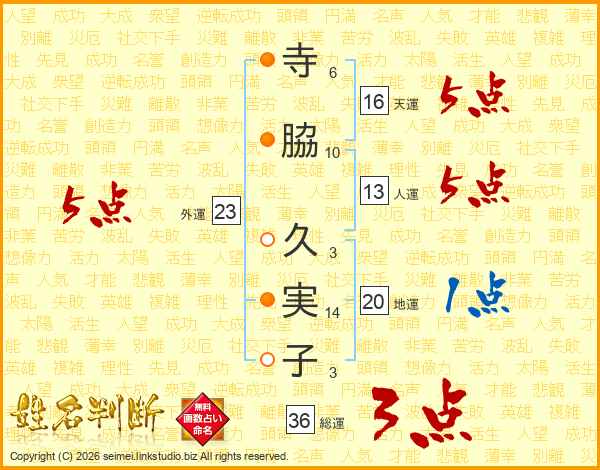 寺脇久実子さんの外運は23画の5点!