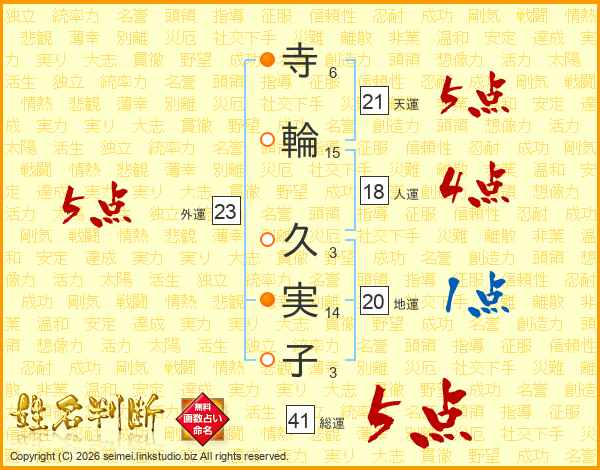 寺(6画)輪(15画) 久(3画)実(14画)子(3画)