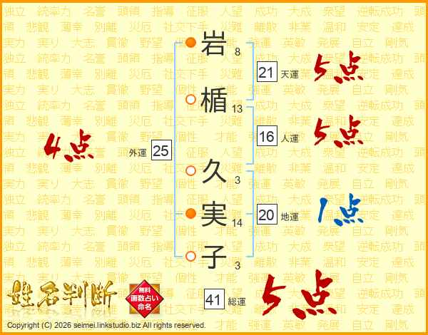 岩楯久実子さんの総運は41画の5点!