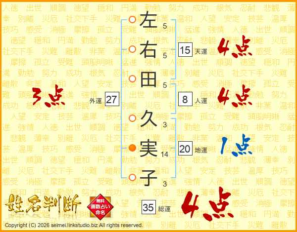 左(5画)右(5画)田(5画) 久(3画)実(14画)子(3画)