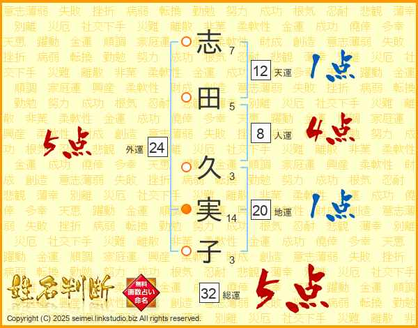 志田久実子さんの外運は24画の5点!