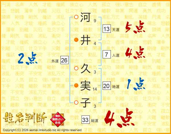 河(9画)井(4画) 久(3画)実(14画)子(3画)