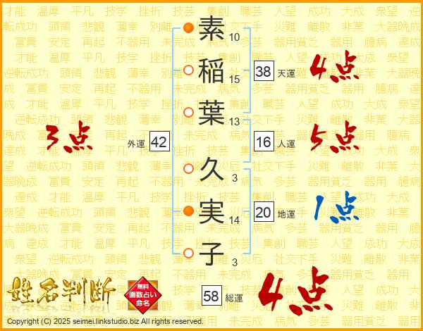素稲葉久実子さんの総運は58画の4点!