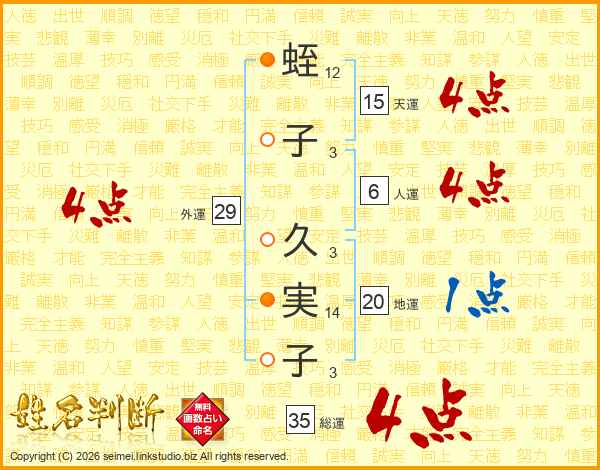 蛭子久実子さんの天運は15画の4点!