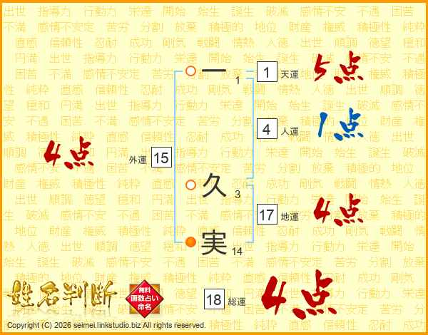 一久実さんの総運は18画の4点!