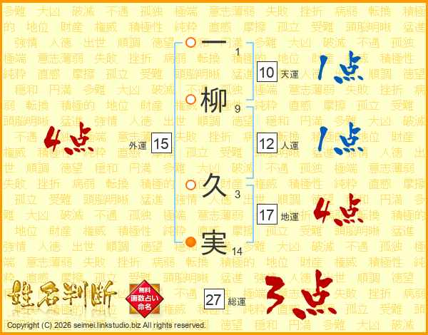 一(1画)柳(9画) 久(3画)実(14画)