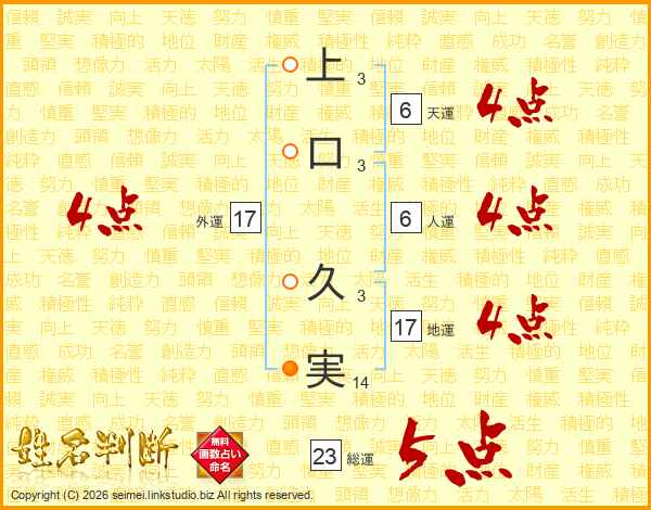 上口久実さんの地運は17画の4点!