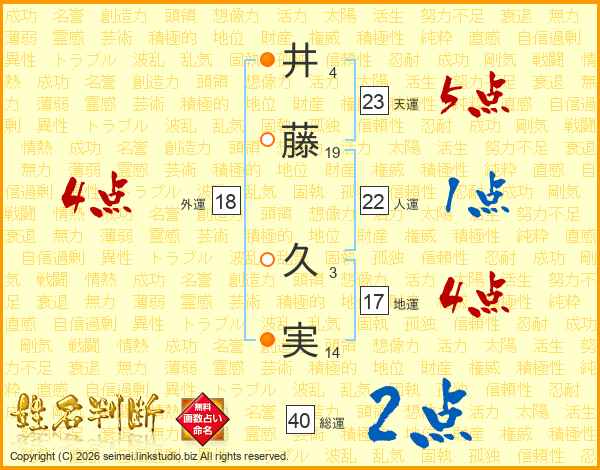 井(4画)藤(19画) 久(3画)実(14画)