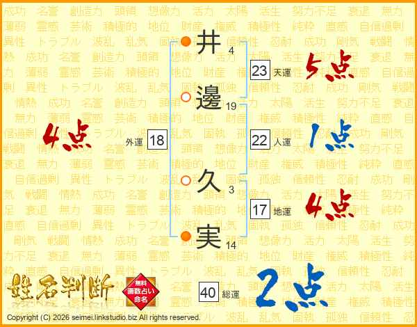 井邊久実さんの地運は17画の4点!
