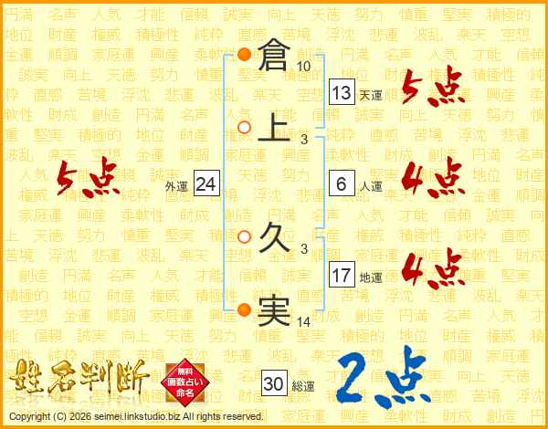 倉上久実さんの外運は24画の5点!