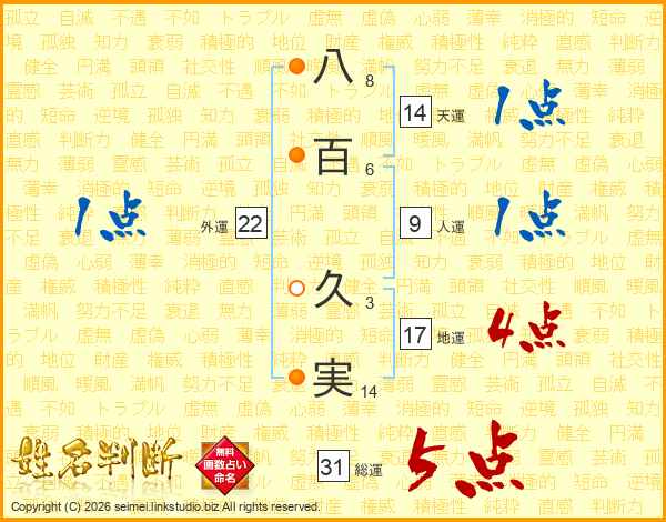 八百久実さんの総運は31画の5点!