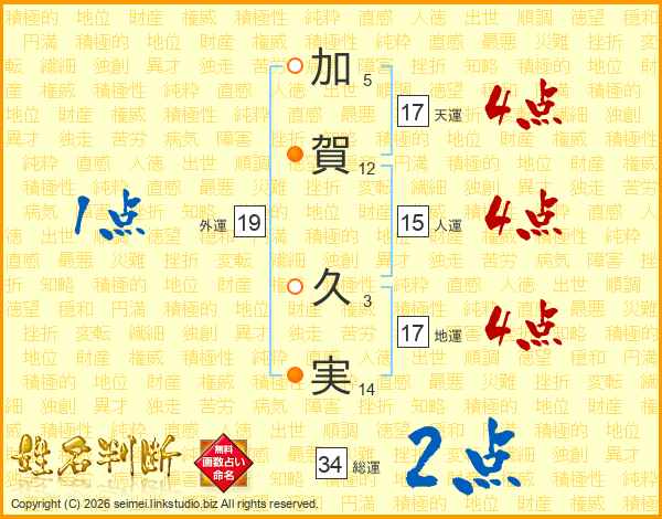 加賀久実さんの天運は17画の4点!