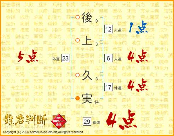 後上久実さんの地運は17画の4点!