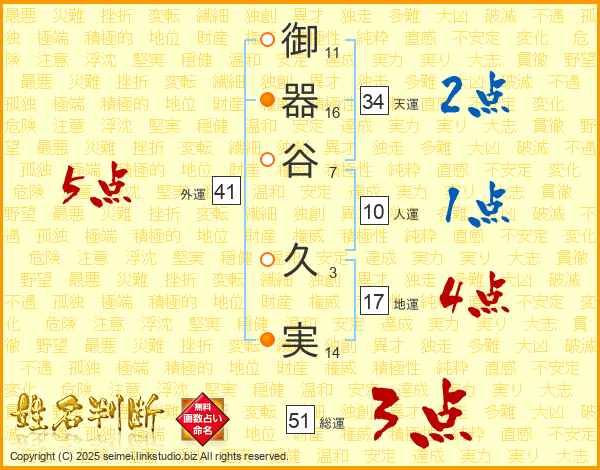 御器谷久実さんの総運は51画の3点!