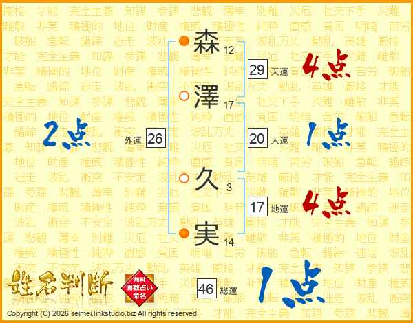 森澤久実さんの総運は46画の1点!