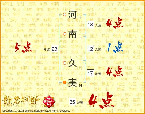 河南久実さんの天運は18画の4点!