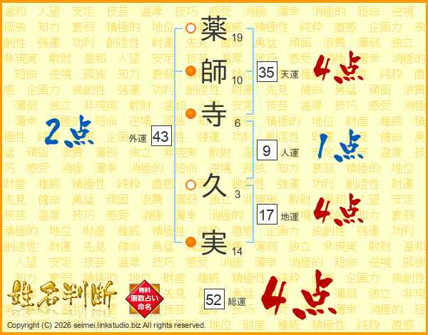 薬師寺久実さんの総運は52画の4点!