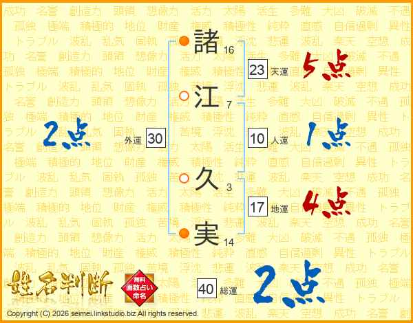 諸江久実さんの天運は23画の5点!
