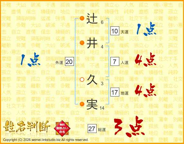 辻(6画)井(4画) 久(3画)実(14画)