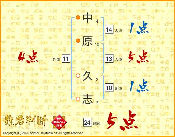 中原久志さんの総運は24画の5点!