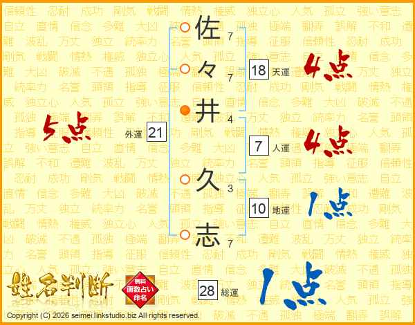 佐(7画)々(7画)井(4画) 久(3画)志(7画)
