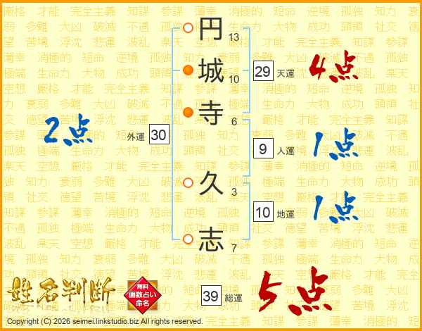 円城寺久志さんの総運は39画の5点!