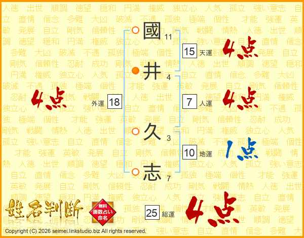 國(11画)井(4画) 久(3画)志(7画)