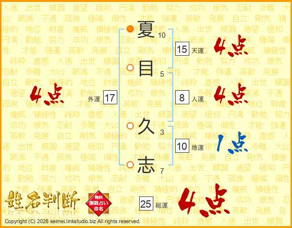 夏(10画)目(5画) 久(3画)志(7画)