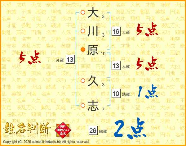 大(3画)川(3画)原(10画) 久(3画)志(7画)